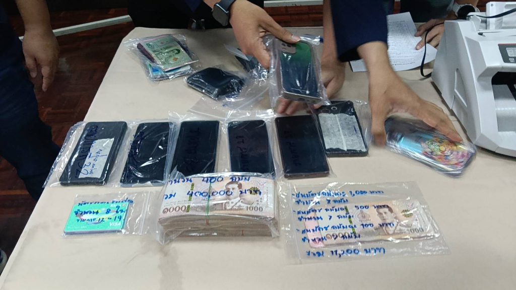 วันนี้ (4 พ.ย. 68) ที่กองบัญชาการตำรวจภูธรภาค 1 พล.ต.ท.วัฒนา ยี่จีน ผู้บัญชาการตำรวจภูธรภาค 1 พร้อมเจ้าหน้าที่ที่เกี่ยวข้อง แถลงผลการจับกุม 8 ชาวไทยเครือข่ายฟอกเงินให้แก๊งสแกมเมอร์ ซึ่งมีทั้งผู้ทำหน้าที่ควบคุมและสั่งการ , ผู้จัดหาและควบคุมบัญชีม้า และเจ้าของบัญชีม้า พร้อมตรวจยึดของกลางได้หลายรายการ ประกอบด้วย เงินสดจำนวน 846,800 บาท , บัญชีธนาคาร 13 บัญชี , บัตรกดเงินเงินสด 14 ใบ , โทรศัพท์มือถือ 18 เครื่อง , ซิมโทรศัพท์มือถือ 23 ซิมและเครื่องนับธนบัตร 1 เครื่อง